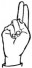 На ћирилици написано ИРЕНА ГАЋЕ састоји се из 9 слова [?]. Исписано ћириличном једноручном азбуком за глувонеме: